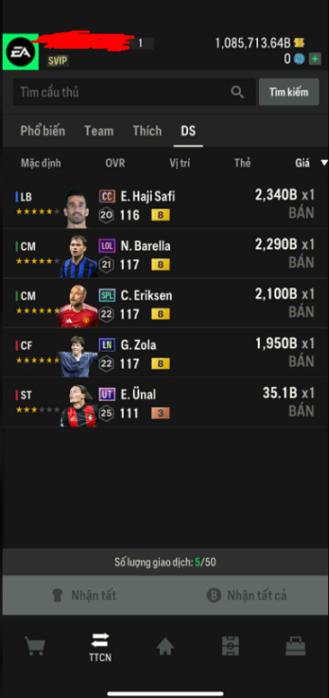 List Cầu Thủ