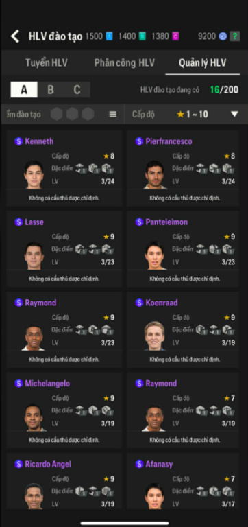 List Cầu Thủ