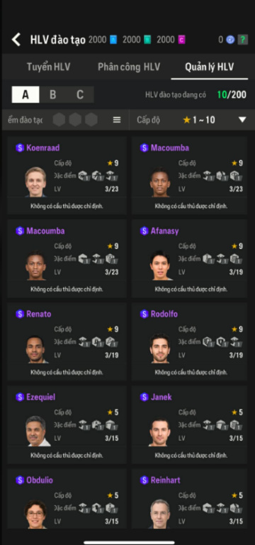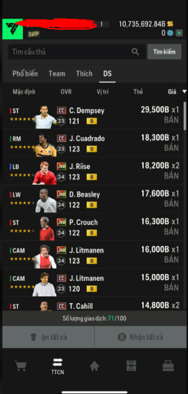 List Cầu Thủ