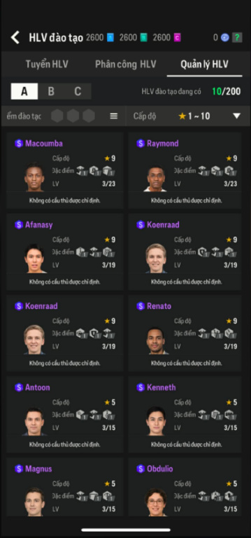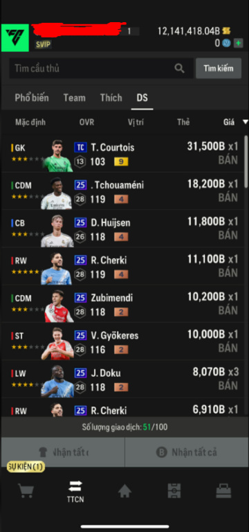 List Cầu Thủ
