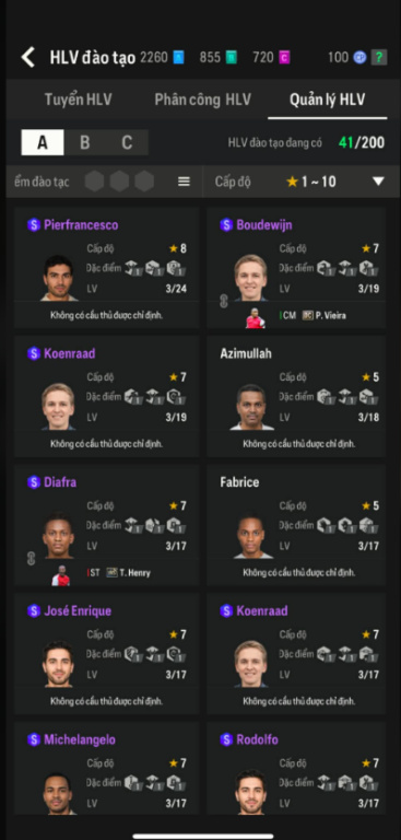 List Cầu Thủ