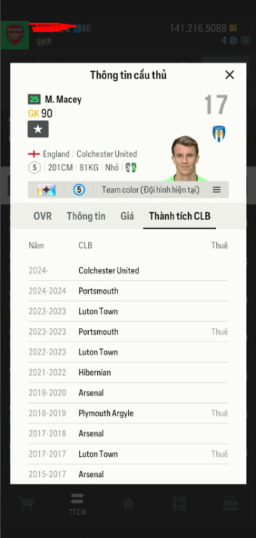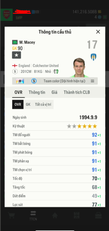 Acc 141216b bp trắng tặng kèm GK +13 buff arsenal, tuyển anh cao 201cm