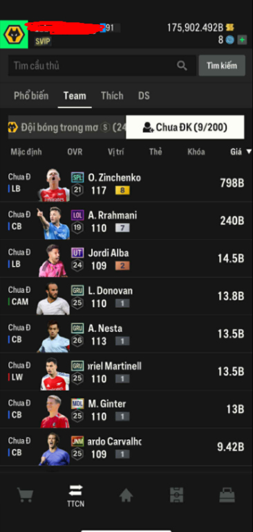 List Cầu Thủ