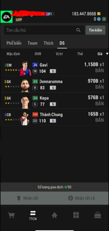 List Cầu Thủ