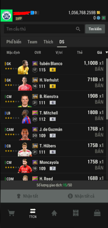 List Cầu Thủ