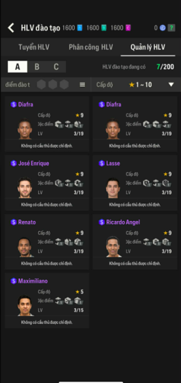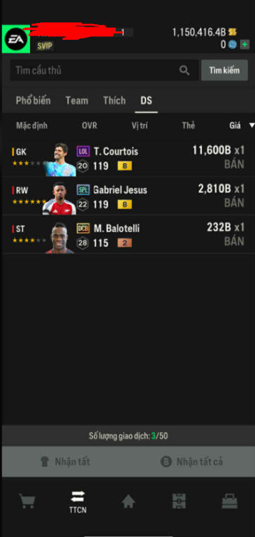 List Cầu Thủ