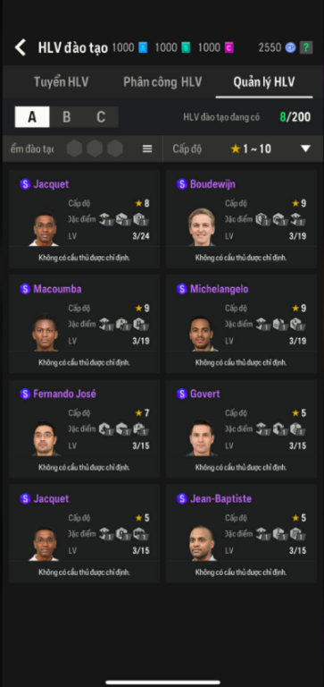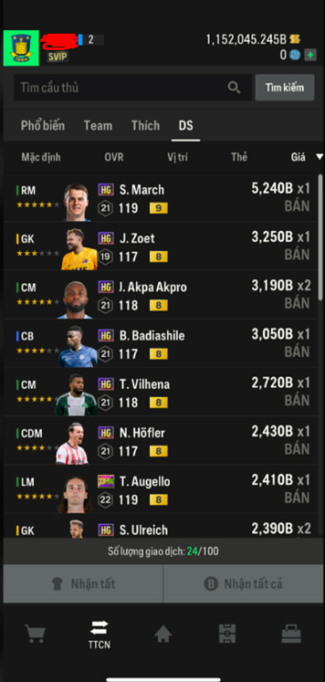 List Cầu Thủ