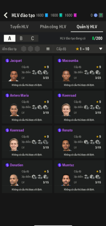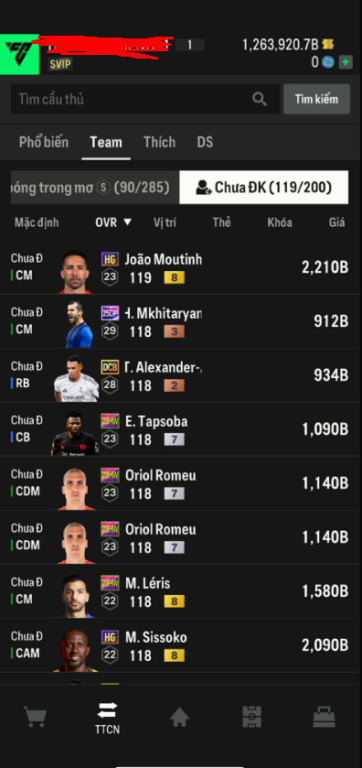 List Cầu Thủ