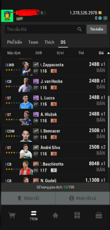 List Cầu Thủ