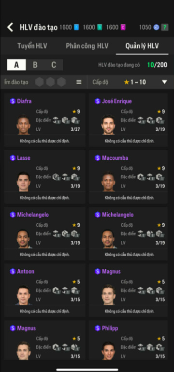List Cầu Thủ