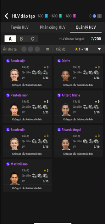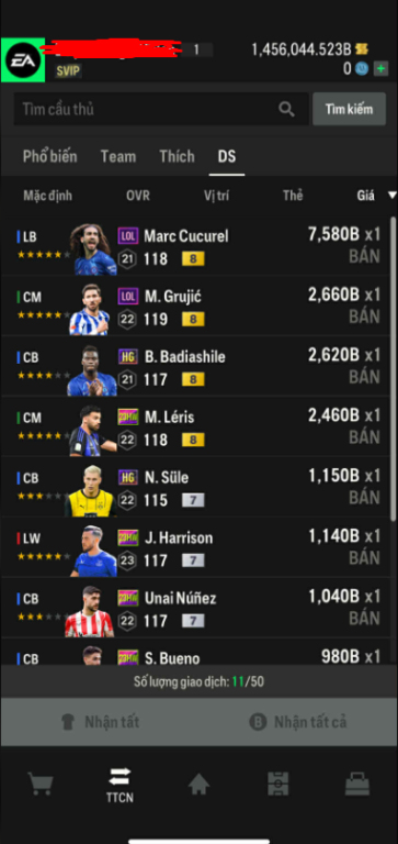 List Cầu Thủ