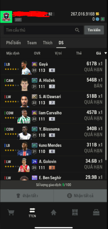 List Cầu Thủ