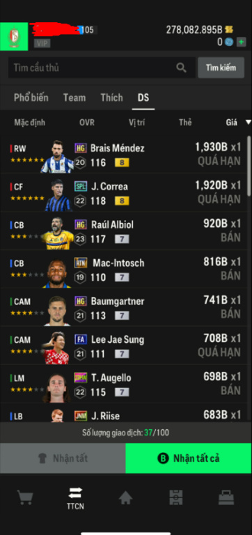List Cầu Thủ