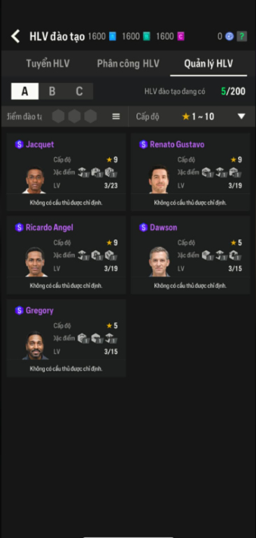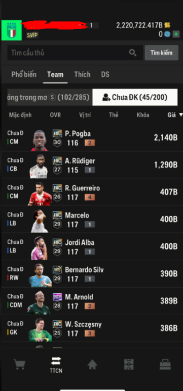 List Cầu Thủ