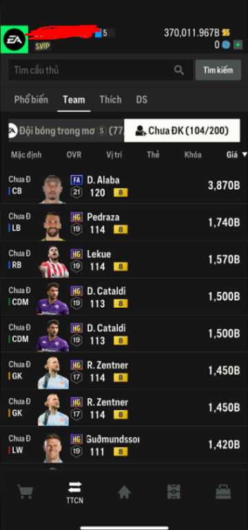 List Cầu Thủ