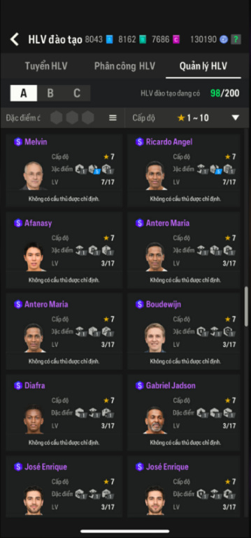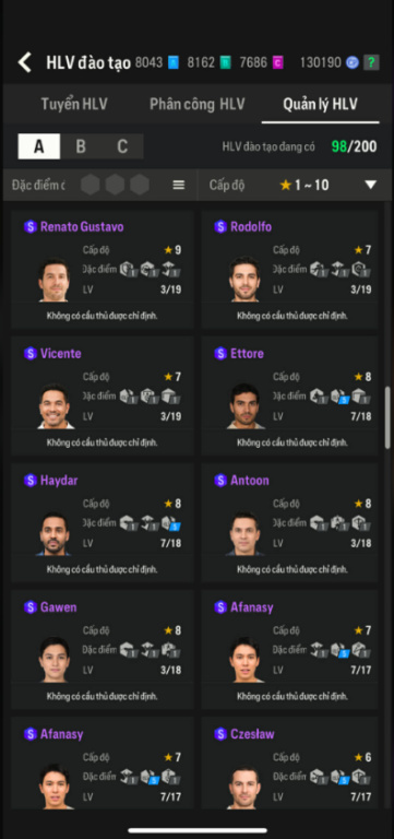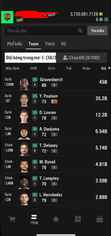 List Cầu Thủ