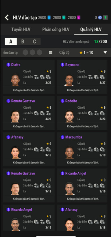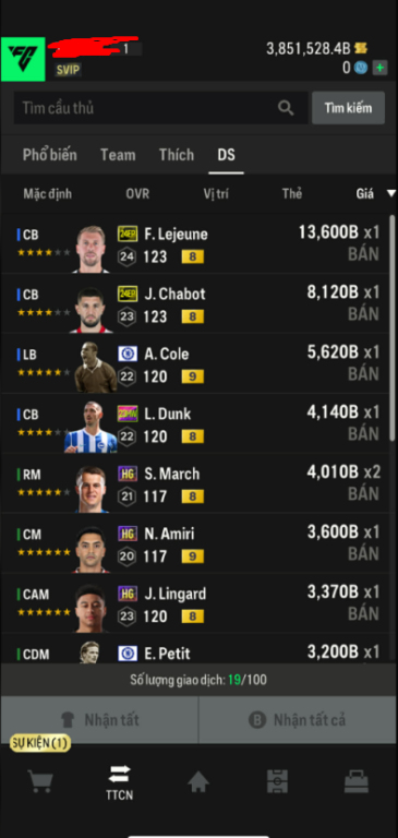 List Cầu Thủ
