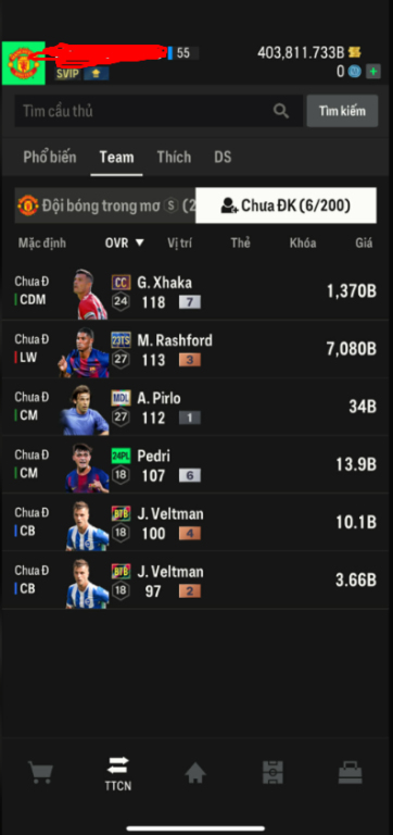List Cầu Thủ