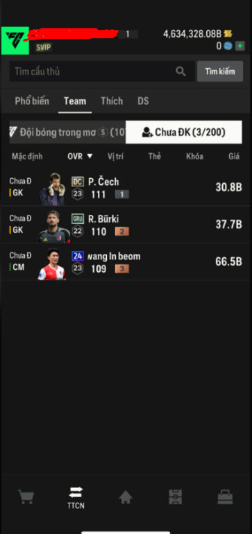 List Cầu Thủ