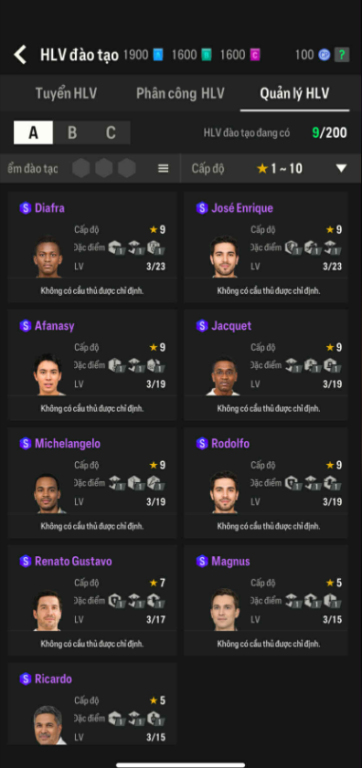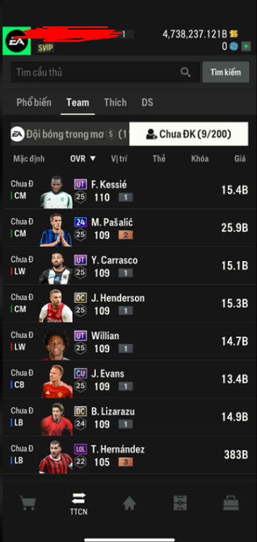 List Cầu Thủ
