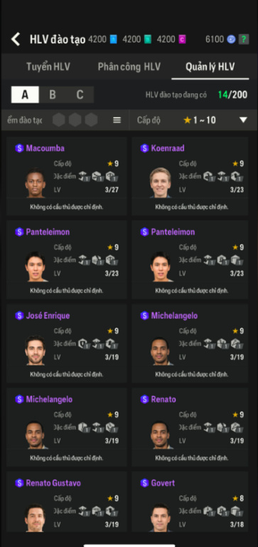 List Cầu Thủ