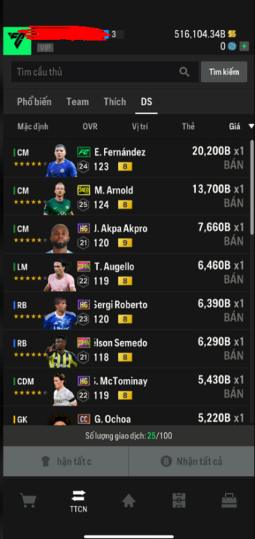 List Cầu Thủ