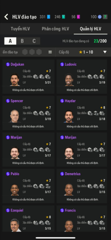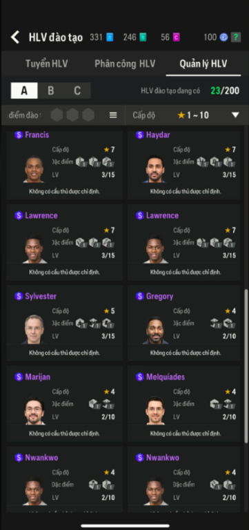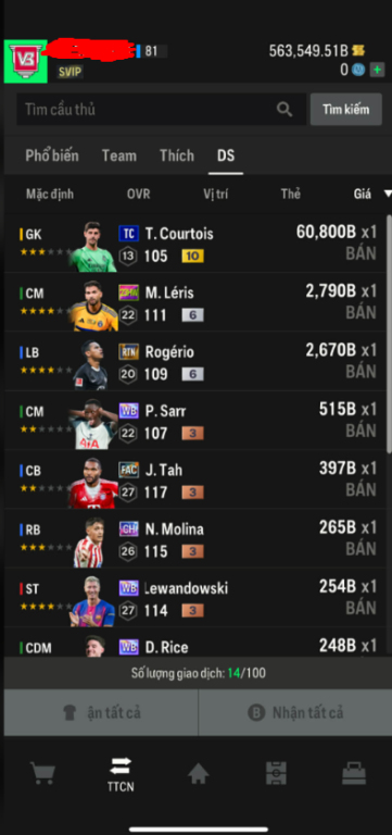 List Cầu Thủ