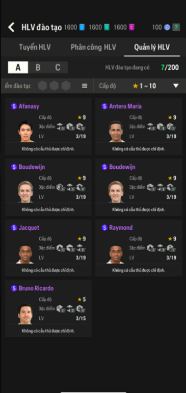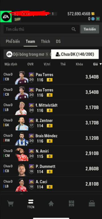 List Cầu Thủ