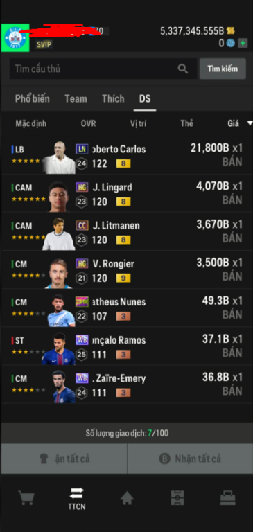 List Cầu Thủ