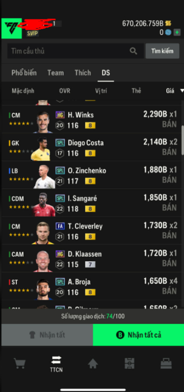 List Cầu Thủ