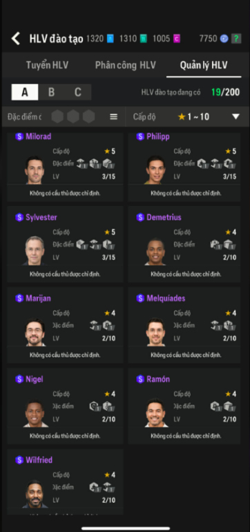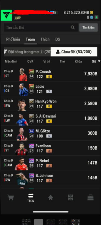 List Cầu Thủ