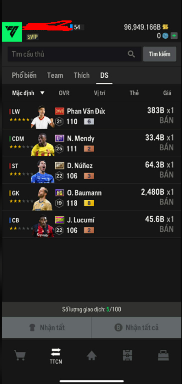 List Cầu Thủ