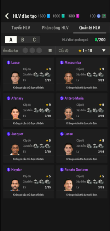 List Cầu Thủ