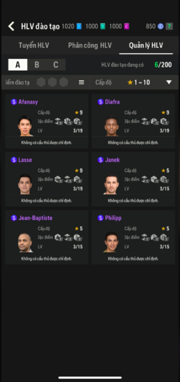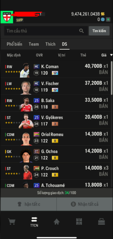 List Cầu Thủ
