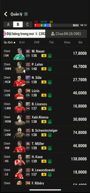 Team bayern +8 ovr 140 +63kb quá đẹp cho ae chiến rank