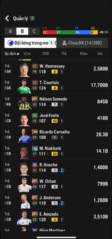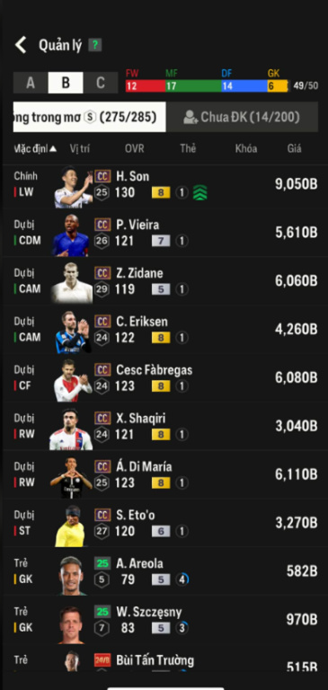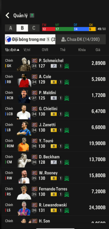 Team full CC +8 ovr cực cao, giá cực rẻ full miniface