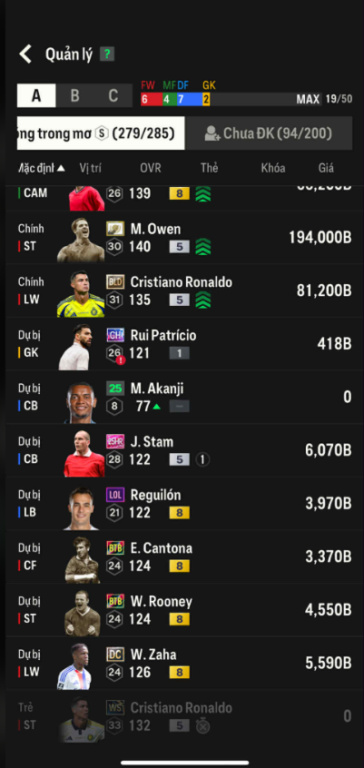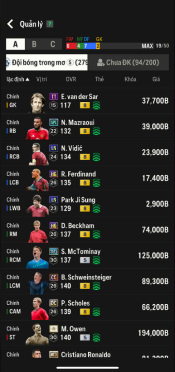 List Cầu Thủ